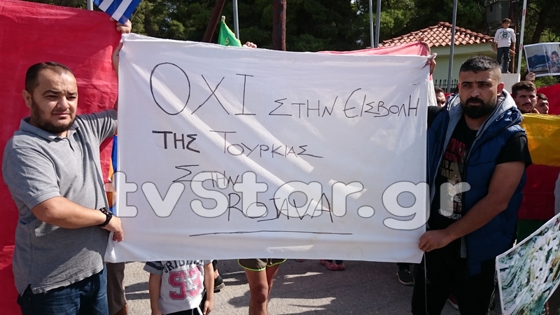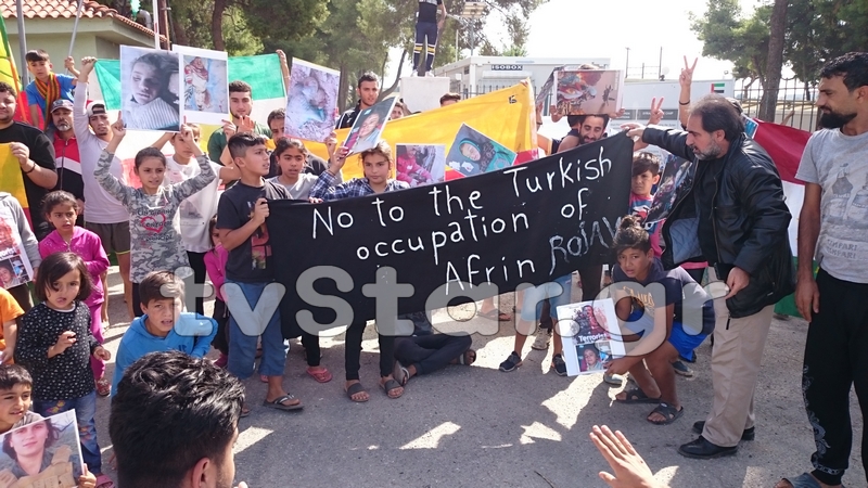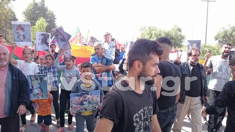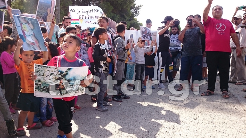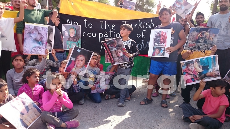 Σήμερα το μεσημέρι, μπροστά από το Κέντρο Υποδοχής της Ριτσώνας, πραγματοποιήθηκε συμβολικό κλείσιμο του δρόμου από Κούρδους πρόσφυγες, ως ένδειξη διαμαρτυρίας για την τουρκική εισβολή στη Συρία.