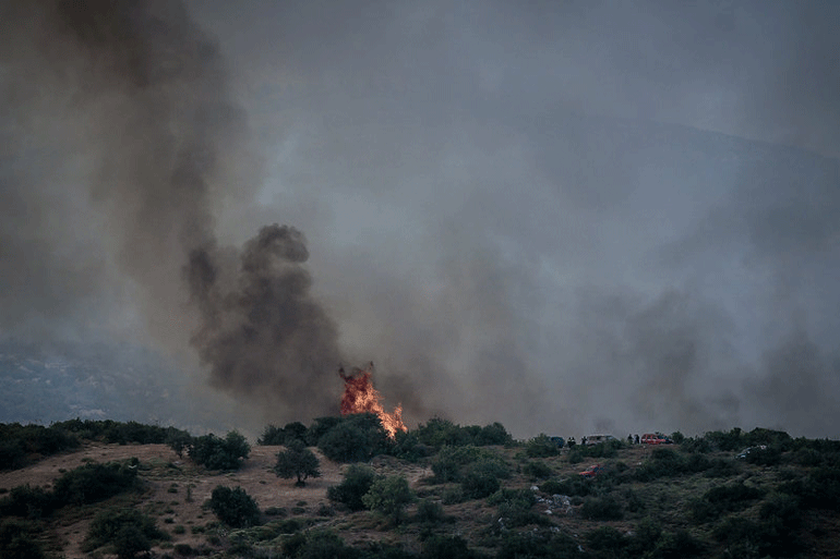 Την ίδια στιγμή σε ορισμένες περιοχές οι άνεμοι φτάνουν ακόμη και τα εννιά μποφόρ γεγονός το οποίο δυσκολεύει τις κινήσεις από την πλευρά των πυροσβεστών. Αναζωπυρώσεις έχουμε την τελευταία ώρα και στο χωριό Θαρούνια όπου και χθες δοκιμάζονταν χωρίς όμως η φωτιά να πλησιάσει τα σπίτια.