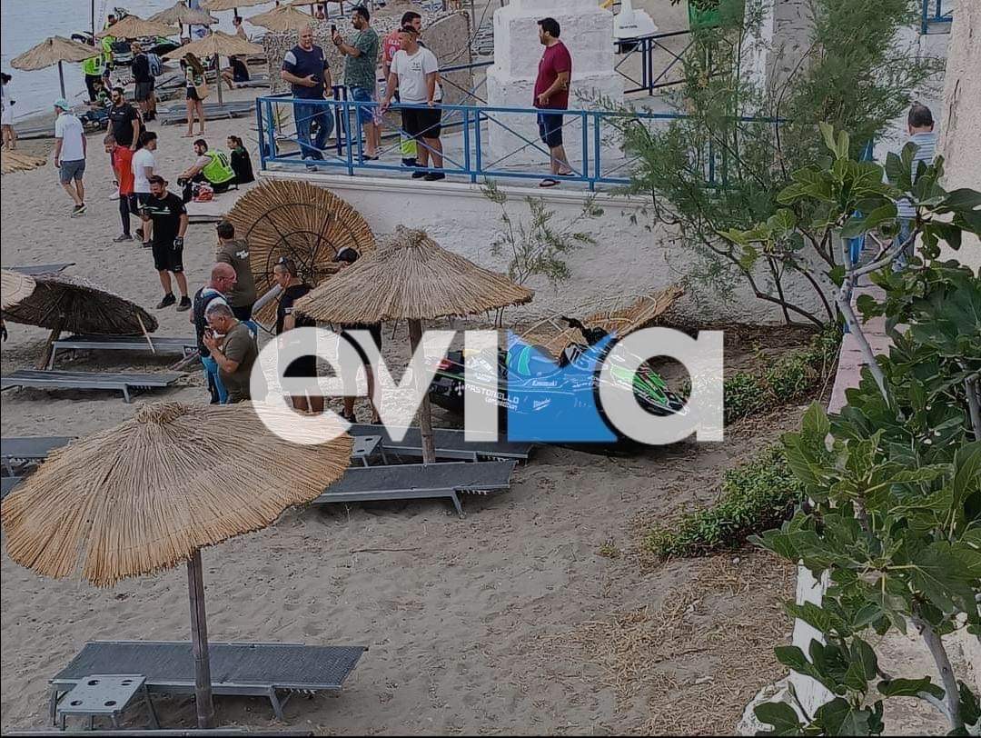 Ατύχημα σημειώθηκε στην Κύμη το μεσημέρι του Σαββάτου, 17/6, κατά τη διάρκεια των αγώνων του παγκόσμιου πρωταθλήματος τζετ σκι. Σύμφωνα με πληροφορίες δύο τζετ σκι ενώ βρίσκονταν στον αγώνα για αγνώστους λόγους βρέθηκαν στην παραλία που βρίσκεται κάτω από το Kymi palace.