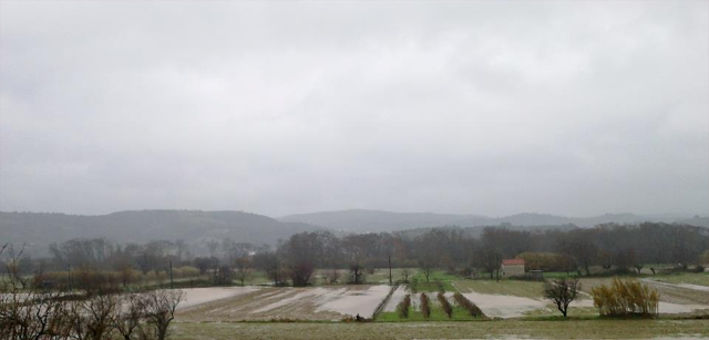 Η δυνατή βροχόπτωση μετέτρεψε τα χωράφια στην περιοχή Αυλωνάρι σε απέραντες λίμνες.