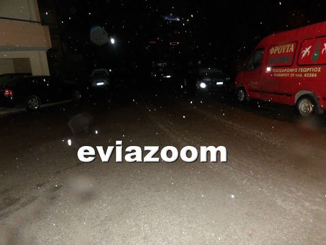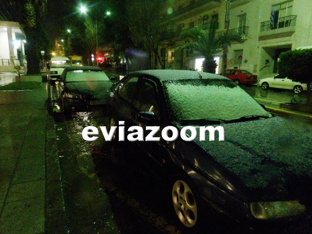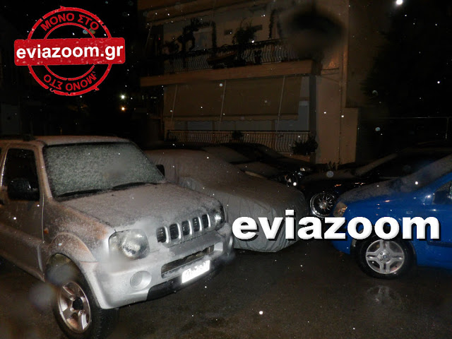 Λίγο πριν από τις 06.00 το πρωί της Πέμπτης ξεκίνησε να χιονίζει στη Χαλκίδα, ντύνοντας στα λευκά στέγες, αυλές, πεζοδρόμια και αυτοκίνητα.
