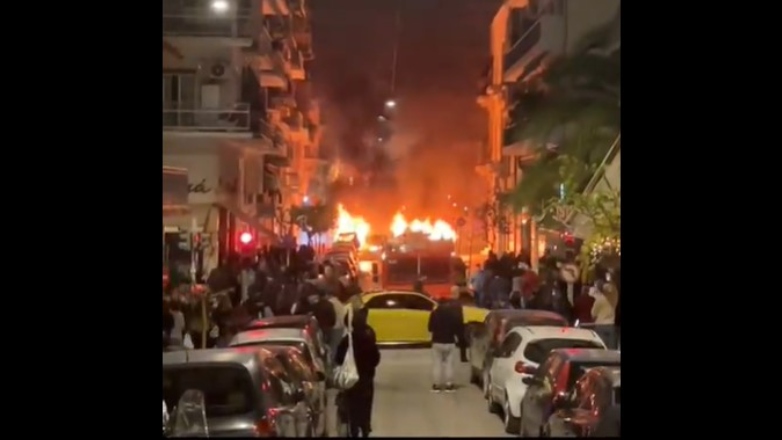 Ακολούθως οι άγνωστοι ταραξίες έβαλαν φωτιές σε κάδους απορριμμάτων, οι οποίες επεκτάθηκαν και σε τουλάχιστον είκοσι σταθμευμένα αυτοκίνητα μεταξύ οδών Καλλιδρομίου, Εμμ. Μπενάκη, Χαριλάου Τρικούπη και Μεθώνης.
