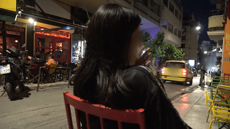 «Είχα βγει έξω για να μαζέψω κάποια τραπέζια έτσι ώστε να μη μείνουν άλλα γυαλιά και ποτήρια έξω για να τα πετάνε οι αστυνομικοί πάνω μας» λέει η ίδια σε συνέντευξη που μας παραχώρησε και την οποία μπορείτε να ακούσετε ολόκληρη (με αλλοιωμένη φωνή, προφανώς λόγω φόβου).