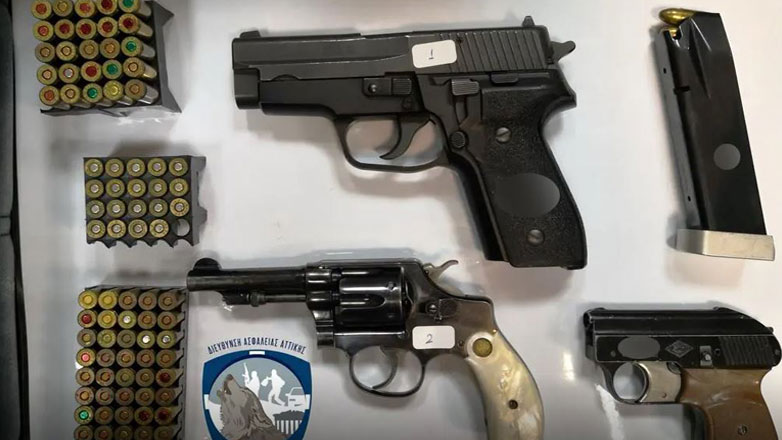- πιστόλι, περίστροφο και πιστόλι φωτοβολίδων,