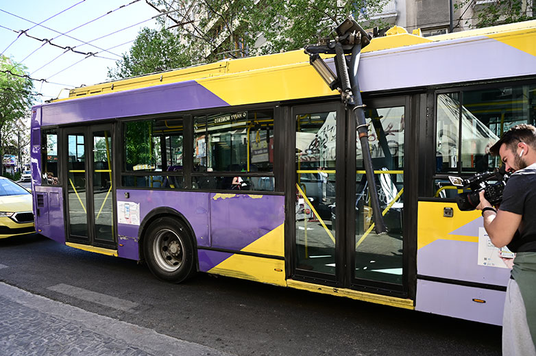 Όπως αναφέρουν οι ίδιες πληροφορίες το τουριστικό λεωφορείο, υπό αδιευκρίνιστες συνθήκες, προσέκρουσε σε υπερυψωμένη δοκό τρόλεϊ, στην Πανεπιστημίου.