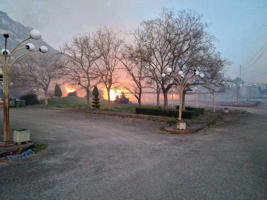 Οι φλόγες κυριολεκτικά έγλειψαν τις εγκαταστάσεις, ενώ το γεγονός ότι υπάρχει πλούσια βλάστηση με πεύκα, επέτρεψε στη πυρκαγιά να μεταφερθεί και αριστερά της εθνικής προς τη θάλασσα!