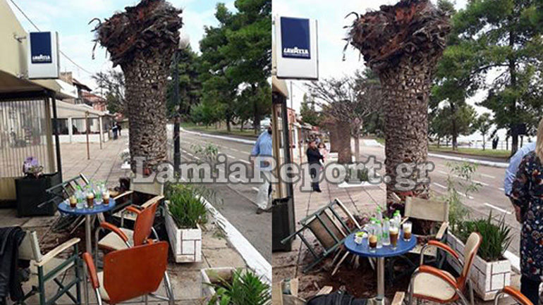 Η γυναίκα βρισκόταν με παρέα σε καφετέρια και την ώρα που απολάμβανε τον καφέ της ένα μεγάλο κομμάτι από φοίνικα έπεσε και ένα μέρος του την πήρε ξυστά στο κεφάλι, τραυματίζοντάς την! Επικράτησε πανικός από τους τρομαγμένους πελάτες που βρισκόντουσαν στο σημείο περιμένοντας να αρχίσει η μαθητική παρέλαση.