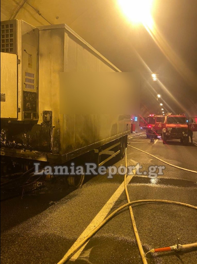 Ο οδηγος είχε προλάβει και είχε απομακρύνει τον τράκτορα και μέσα στο τούνελ είχε μείνει η καρότσα του φορτηγού, όπως βλέπετε και στις φωτογραφίες του LamiaReport .