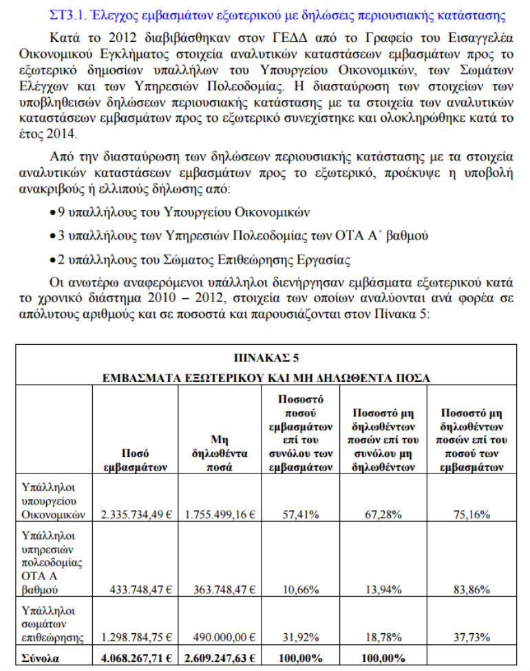 Ο έλεγχος συµπερασµατικά κατέληξε στα κάτωθι: