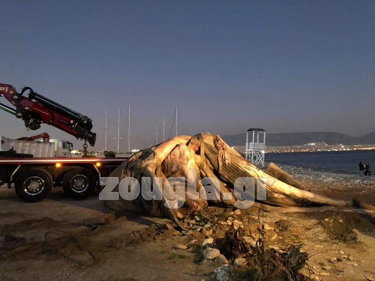 Συνεργεία του δήμου έφτασαν αμέσως στο σημείο προκειμένου να γίνει η μεταφορά της, ενώ νωρίτερα τόσο πλωτό του ΛΣ όσο και ένα ρυμουλκό, μάλλον ρυμουλκούσαν το κουφάρι του άτυχου θηλαστικού.