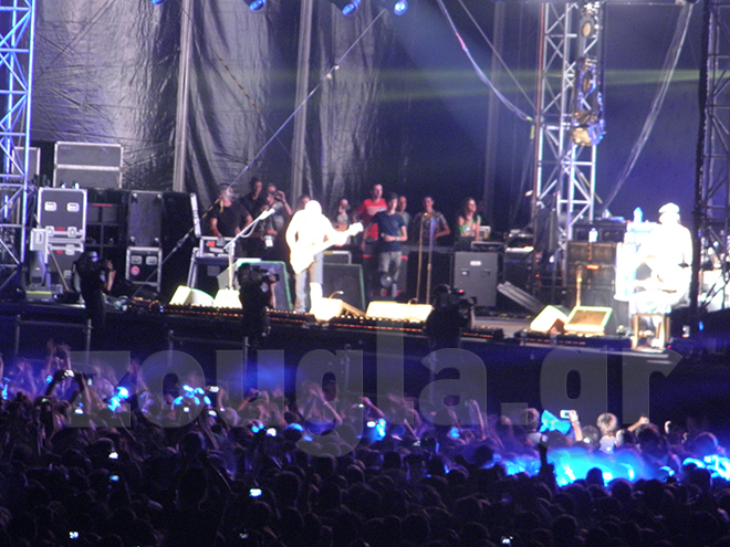 Με επευφημίες και χειροκροτήματα το κοινό υποδέχθηκε στο stage τους Red Hot Chili Peppers στις 21:45 μ.μ. oι οποίοι άρχισαν την πολυαναμενόμενη συναυλία τους με το τραγούδι «Monarchy of Roses».