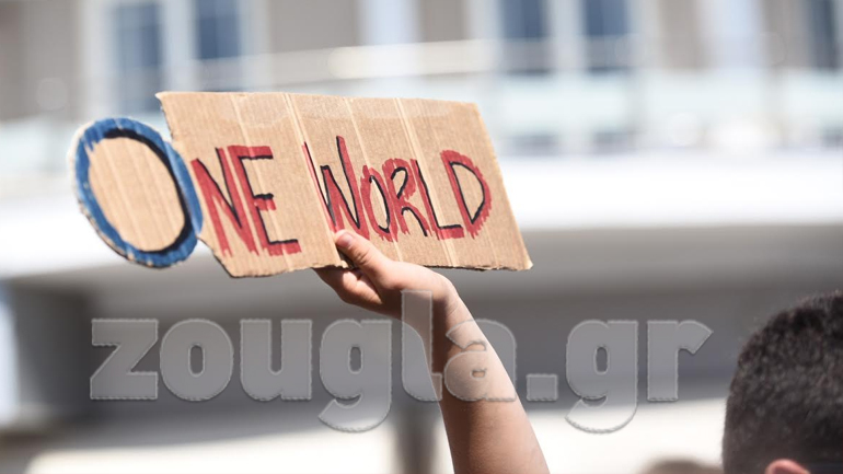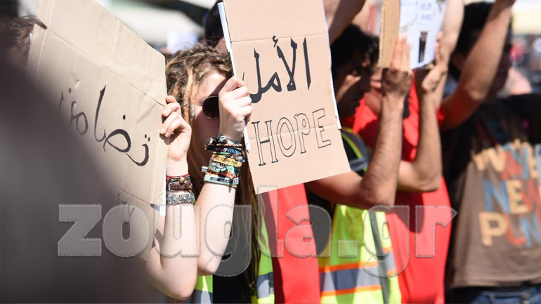 Ομάδα αλληλέγγυων και ακτιβιστών συγκεντρώθηκε στο λιμάνι της Μυτιλήνης και διαμαρτυρήθηκε για το κέντρο κράτησης μεταναστών στη Μόρια Λέσβου.