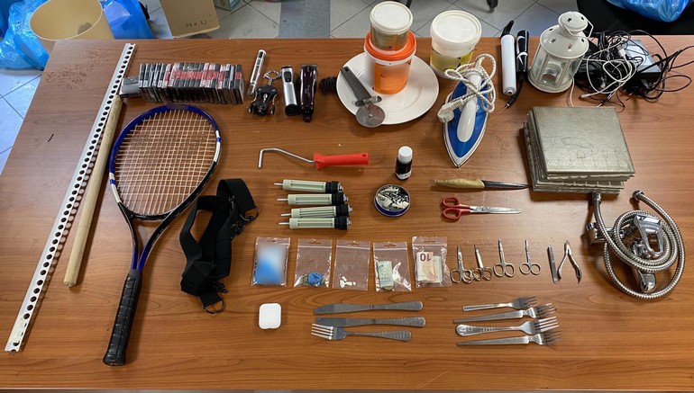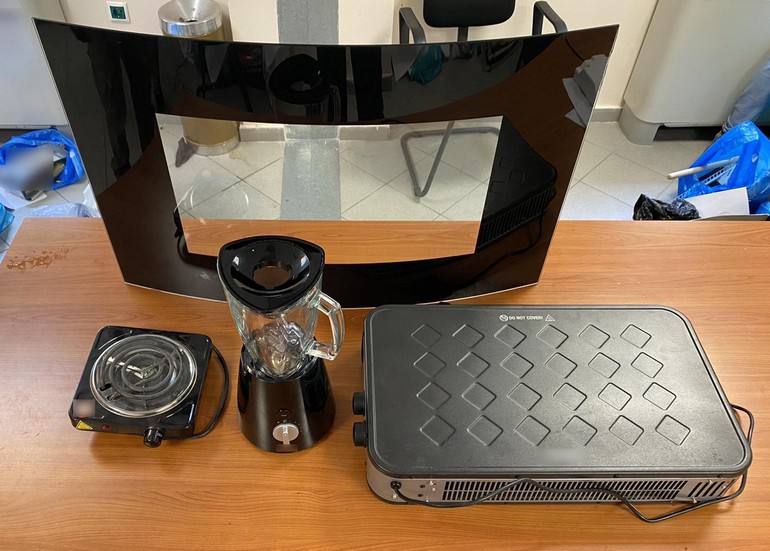 Βρέθηκε ακόμα, σε μία από τις πτέρυγες, μεγάλος αριθμός ειδών, για τα οποία διενεργείται πειθαρχική έρευνα σχετικά με την προέλευση και την εισαγωγή τους στο Κατάστημα Κράτησης όπως, ψυγεία και καταψύκτες, επιδαπέδιο κλιματιστικό, τηλεοράσεις, μπάρμπεκιου με κάρβουνα, ηλεκτρικές και ηλεκτρονικές συσκευές (ηλεκτρική κουζίνα, φούρνος μικροκυμάτων, κ.λπ.) οικιακός εξοπλισμός και είδη κουζίνας, γυάλινη πρόσοψη τζακιού, μπουκάλια με οινοπνευματώδη, δοχεία με συμπληρώματα εκγύμνασης κ.λπ. αντικείμενα.
