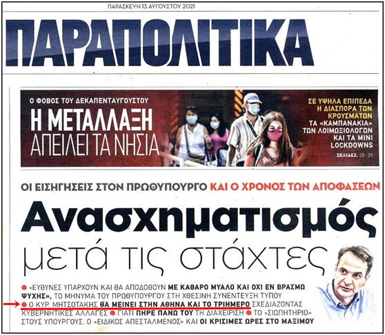 η φιλοκυβερνητική εφημερίδα «Παραπολιτικά»,