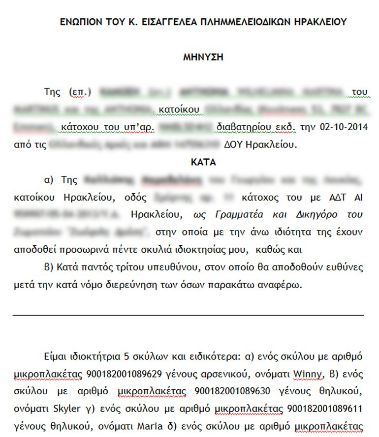 Διαβάστε τι αναφέρεται στη μήνυση που κατατέθηκε στον Εισαγγελέα:
