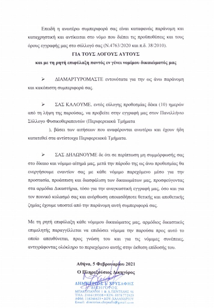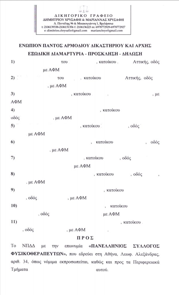 Οι φυσικοθεραπευτές ζητούν εισαγγελική παρέμβαση ώστε να σταματήσει επιτέλους ή καταπάτηση των επαγγελματικών τους δικαιωμάτων από τον Πανελλήνιο Σύλλογο Φυσικοθεραπευτών (ΠΣΦ)