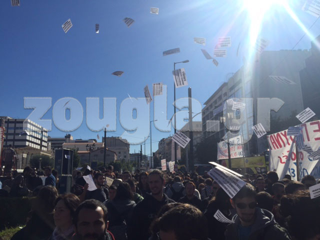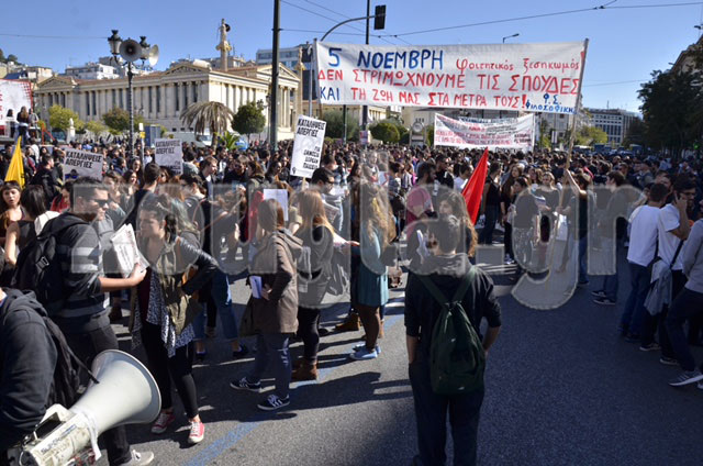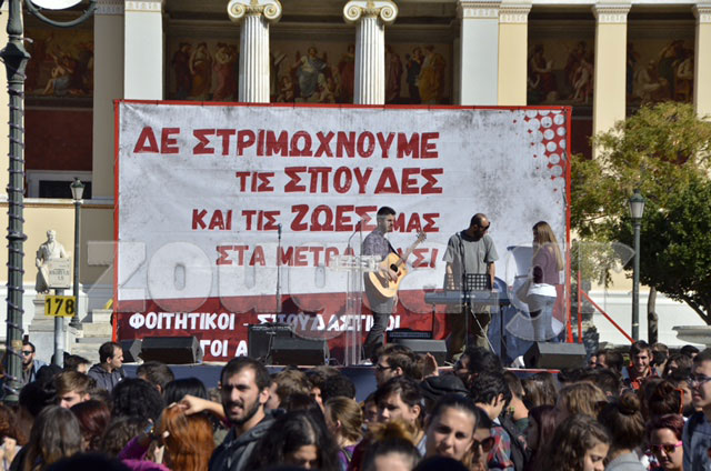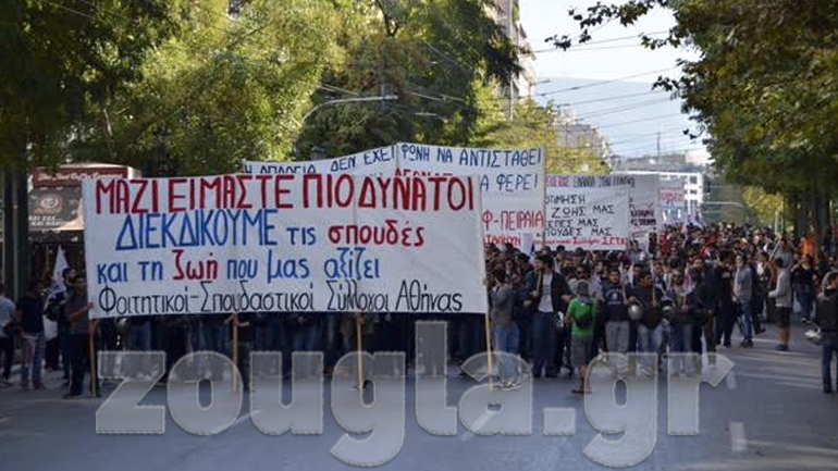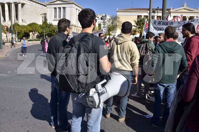 Περίπου δύο χιλιάδες άτομα μέλη φοιτητικών και σπουδαστικών συλλόγων διαδήλωσαν στο κέντρο της Αθήνας ενάντια στις περικοπές στην Παιδεία.