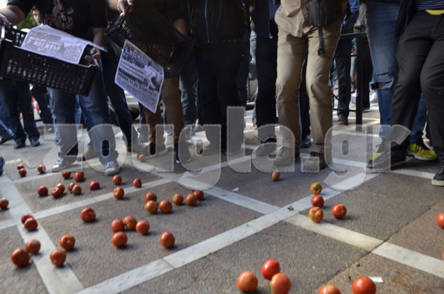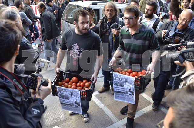 Φοιτητές πέταξαν ντομάτες στην είσοδο του υπουργείου Εργασίας