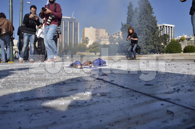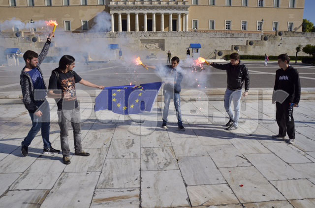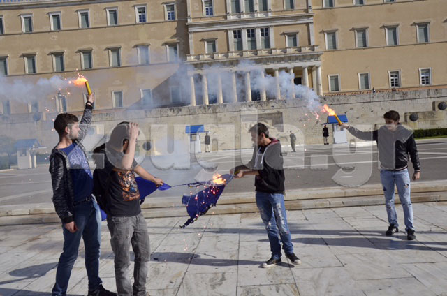 Την ώρα που η πορεία των φοιτητικών και σπουδαστικών συλλόγων περνούσε έξω από τη Βουλή, μια ομάδα φοιτητών άναψε καπνογόνα και έκαψε συμβολικά τη σημαία της Ευρωπαϊκής Ένωσης έξω από το Κοινοβούλιο, ως ένδειξη διαμαρτυρίας για την υποχρηματοδότηση της Παιδείας.