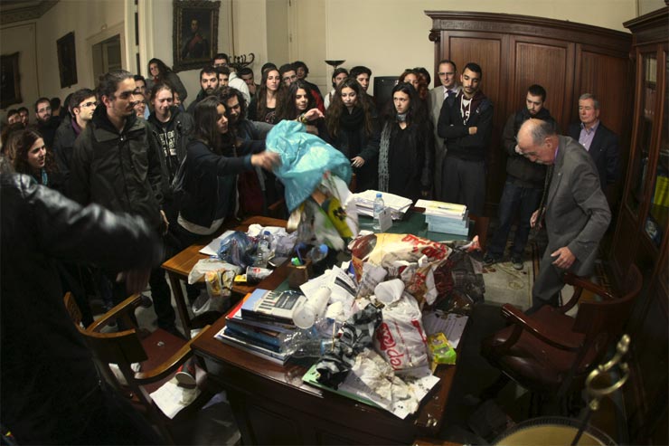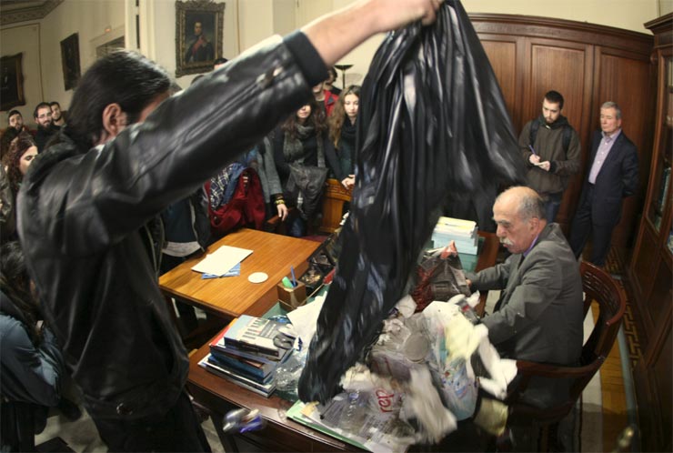 Ομάδα φοιτητών εναπόθεσε σκουπίδια σε γραφείο της Πρυτανείας του ΕΚΠΑ: