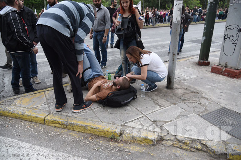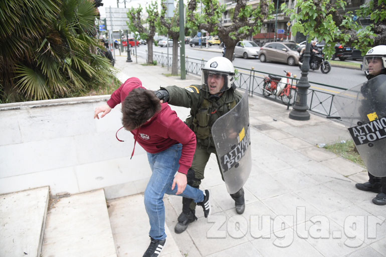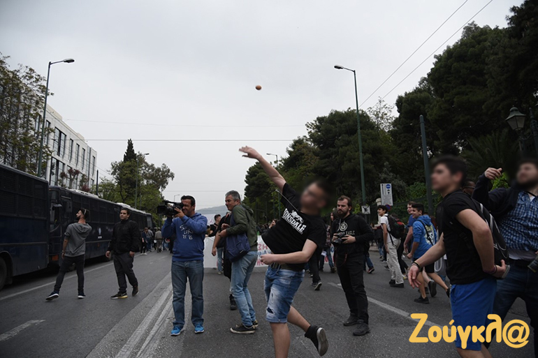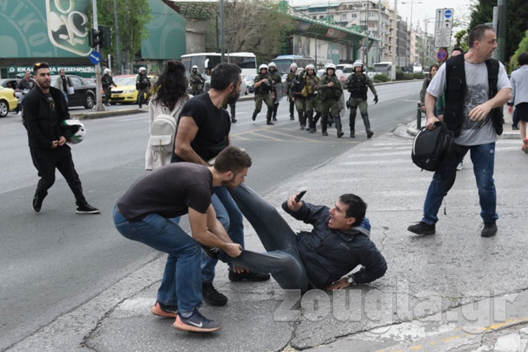 Φωτογραφίες από την επίθεση κατά ανδρών της Ασφάλειας που ήταν στην πορεία: