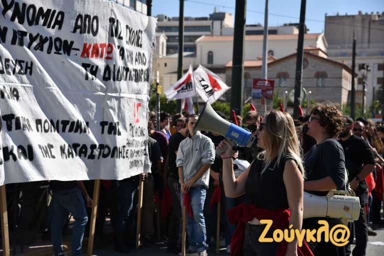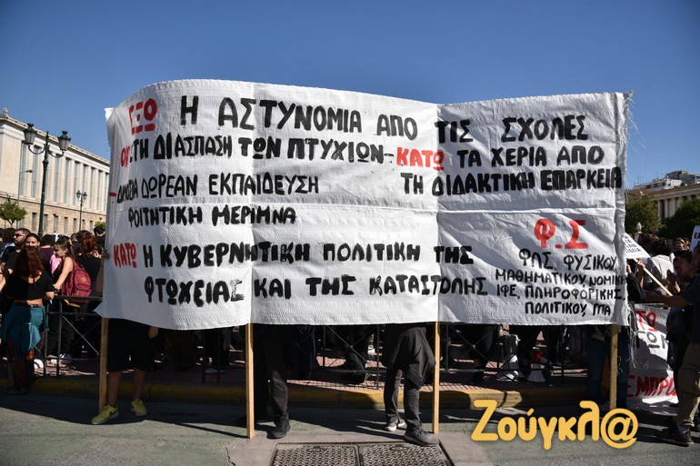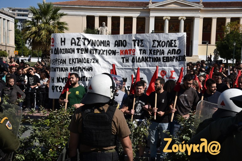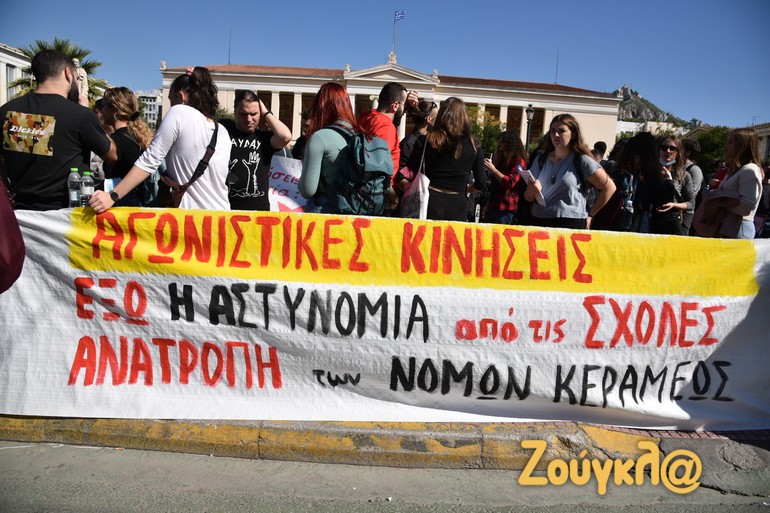 Συλλαλητήριο ενάντια στην εγκατάσταση της πανεπιστημιακής αστυνομίας στα ιδρύματα και την εκπαιδευτική αναδιάρθρωση πραγματοποιούν φοιτητές και καθηγητές αυτή την ώρα στα Προπύλαια.