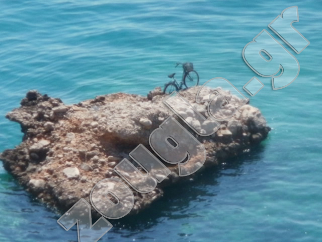 -To ποδήλατο κάποια στιγμή μπορεί να έπεσε στη θάλασσα και το κύμα να το μετέφερε και να το σκάλωσε πάνω στον βράχο.