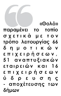 Από τη μεριά τους οι Αναπτυξιακές Δημοτικές Επιχειρήσεις αρνούνται να απογραφούν με το επιχείρημα ότι δεν χρηματοδοτούνται από τον κρατικό προϋπολογισμό, αλλά ζουν και επιβιώνουν από προγράμματα της Ε.Ε., με βάση τα οποία και διαμορφώνονται οι αμοιβές των απασχολουμένων. Ωστόσο, υπάρχει ρητό αίτημα από το Υπουργείο Διοικητικής Μεταρρύθμισης για ένταξή τους στο Μητρώο Φορέων Γενικής Κυβέρνησης, καθώς οι Δήμοι κατέχουν άνω του 50% των μετοχών στις εταιρείες αυτές, επομένως η απογραφή πρέπει να γίνει. Μάλιστα, αξιωματούχοι τόσο του Υπουργείου Εσωτερικών όσο και του Υπουργείου Διοικητικής Μεταρρύθμισης επαναλαμβάνουν πως η άρνηση για απογραφή συνδέεται και με την απροθυμία να βγουν στην επιφάνεια σοβαρές παρατυπίες του παρελθόντος σχετικά με τον τρόπο λειτουργίας διαφόρων φορέων, οι οποίοι παραμένουν στο… ημίφως.