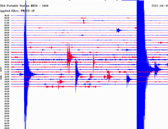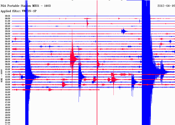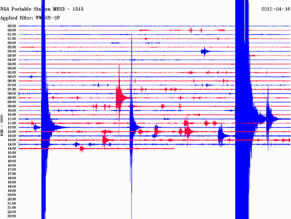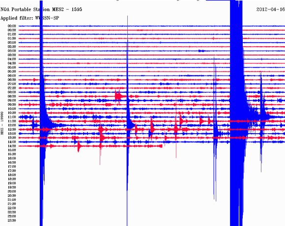 Μετασεισμική ακολουθία στη Μεθώνη, Πρώτη καταχώρηση: Δευτέρα, 16 Απριλίου 2012, 16:58