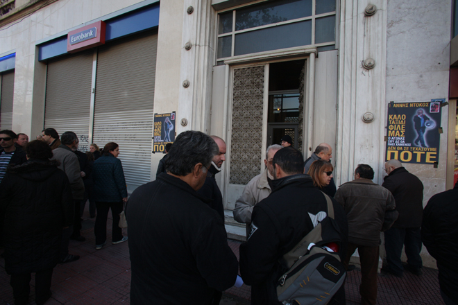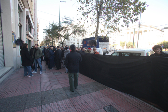 Έξω από το Γενικό Λογιστήριο του Κράτους συγκεντρώθηκαν σήμερα το μεσημέρι μικροομολογιούχοι, μισή ώρα πριν από την έναρξη της συνάντησης της αντιπροσωπείας του Συλλόγου Φυσικών Προσώπων Ομολογιούχων του Ελληνικού Δημοσίου με τους εκπροσώπους του υπουργείου Οικονομικών, για να αποτίσουν φόρο τιμής στον πρόεδρό τους Γιάννη Ντόκο, που έφυγε από την ζωή πριν από λίγες ημέρες.