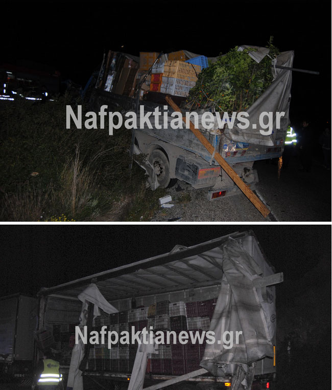 Ένα φορτηγό που κινούνταν με κατεύθυνση προς Μεσολόγγι εξετράπη της πορείας του στο ύψος της Παλιοβούνας αφού πρώτα συγκρούστηκε με την καρότσα διερχόμενου φορτηγού που κατευθυνόταν προς Αντίρριο λίγο μετά τις 22:00 το βράδυ της Πέμπτης.