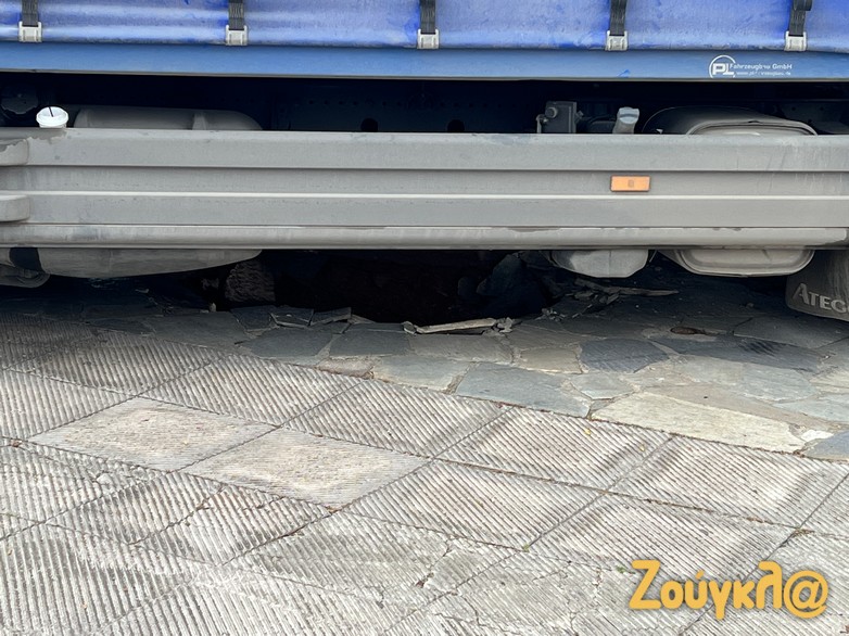 Κατά πληροφορίες, το φορτηγό ήταν φορτωμένο με νερά τα οποία θα παρέδιδε – ως δωρεά – στον ναό της Αγίας Φωτεινής Ιλισσού. Την ώρα που έμπαινε στο πλακόστρωτο, ωστόσο, το έδαφος υποχώρησε και η μια ρόδα έπεσε σε τρύπα διαμέτρου 1-1,5 μέτρου που άνοιξε.