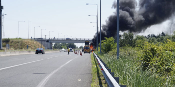 Ο οδηγός του οχήματος αντιλήφθηκε πυκνούς καπνούς από το πίσω μέρος του Ι.Χ. με το οποίο κουβαλούσε άδειες κλούβες για φρούτα. Η φωτιά εξαπλώθηκε σε όλο το όχημα το οποίο κάηκε ολοσχερώς.