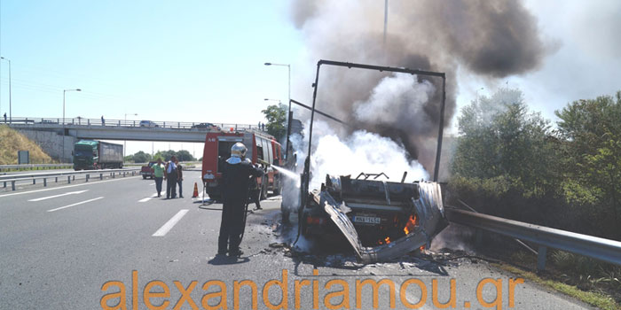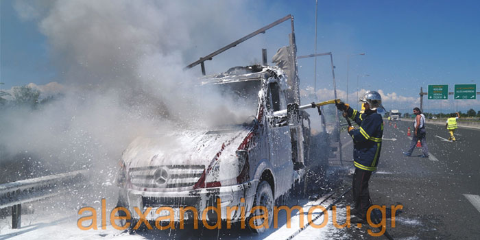 Φωτιά ξέσπασε περίπου στις 12 το μεσημέρι σήμερα σε Ι.Χ. φορτηγάκι στην Εγνατία οδό μετά τον κόμβο Νησελίου, το οποίο κατευθυνόταν προς τη Θεσσαλονίκη.