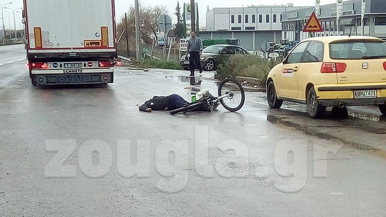 Ένας αλλοδαπός ποδηλάτης, περίπου 40 ετών, σύμφωνα με αυτόπτη μάρτυρα, έχασε τον έλεγχο του δίκυκλου και έπεσε στις πίσω ρόδες φορτηγού οχήματος, που εκείνη τη στιγμή είχε ξεκινήσει να κινείται, από τον παράδρομο της Εθνικής Οδού. Ο άτυχος ποδηλάτης αποκεφαλίστηκε.