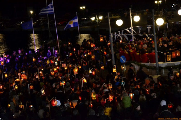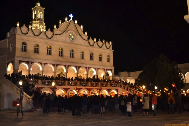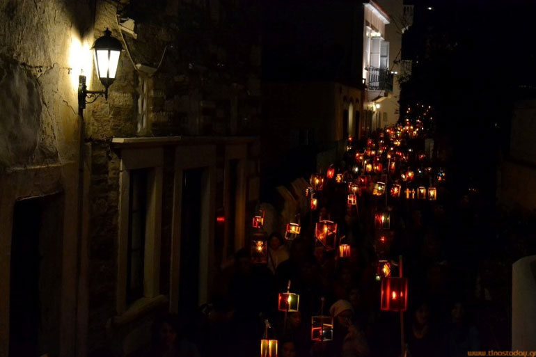 Όπως κάθε χρόνο έτσι και φέτος το νησί της Τήνου γιόρτασε την «Εύρεση της Παναγίας». Εκατοντάδες κάτοικοι από κάθε γωνιά του νησιού πραγματοποίησαν αργά το απόγευμα του Σαββάτου, με τη δύση του ήλιου, την παραδοσιακή λαμπαδηφορία με τα «Φαναράκια» από τα προπύλαια του Ναού της Παναγίας και υπό τους ήχους της Φιλαρμονικής έψαλαν το: