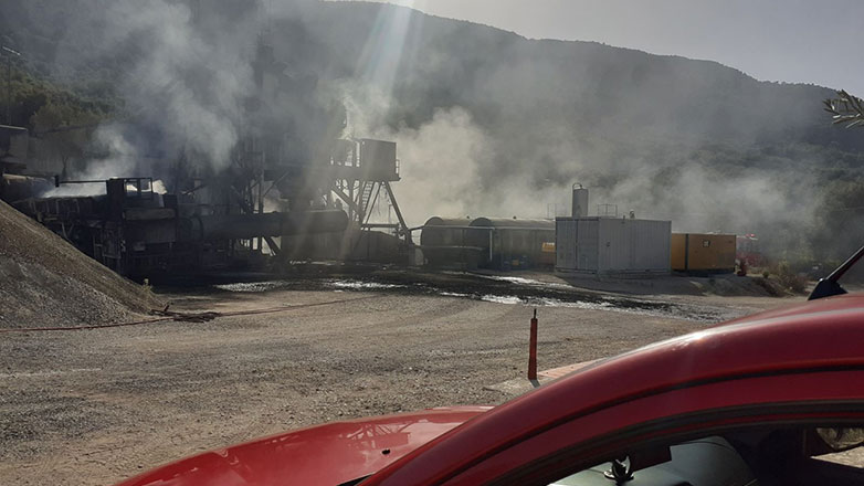 Οι φλόγες ξεπήδησαν λίγο μετά τις 08:00 το πρωί ενώ ακολούθησαν διαδοχικές εκρήξεις, καθώς στον χώρο υπάρχουν εύφλεκτα υλικά, ενώ το εργοτάξιο βρίσκεται σε δασική έκταση.