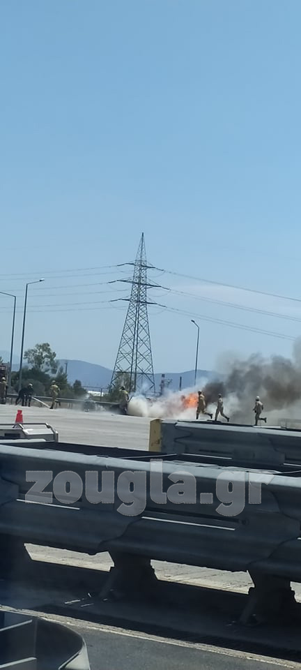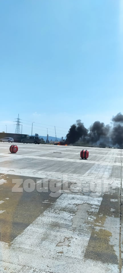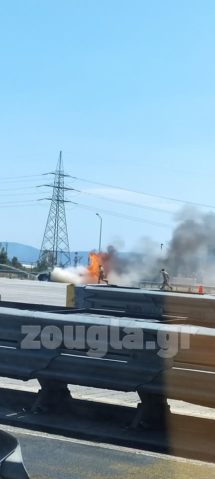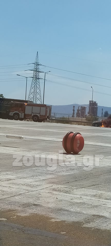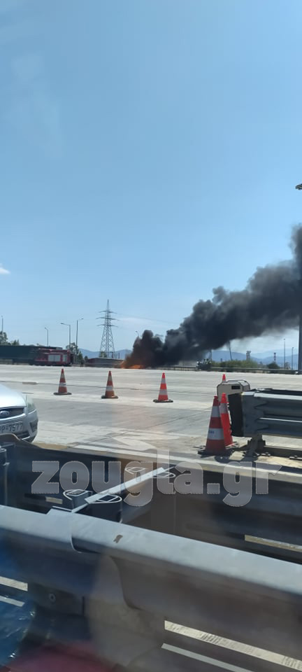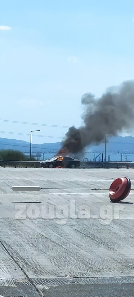 Στις φλόγες τυλίχτηκε ένα αυτοκίνητο στα διόδια της Ελευσίνας περίπου στις 12:00 τη Δευτέρα.