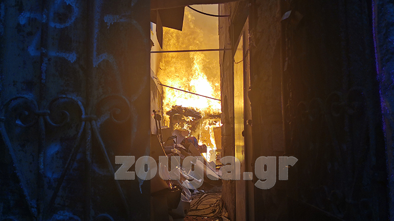 Το κτήριο βρίσκεται στην οδό Ερεσού και για την ώρα δεν είναι γνωστές οι ακριβείς συνθήκες που είχαν ως αποτέλεσμα το ξέσπασμα της φωτιάς.