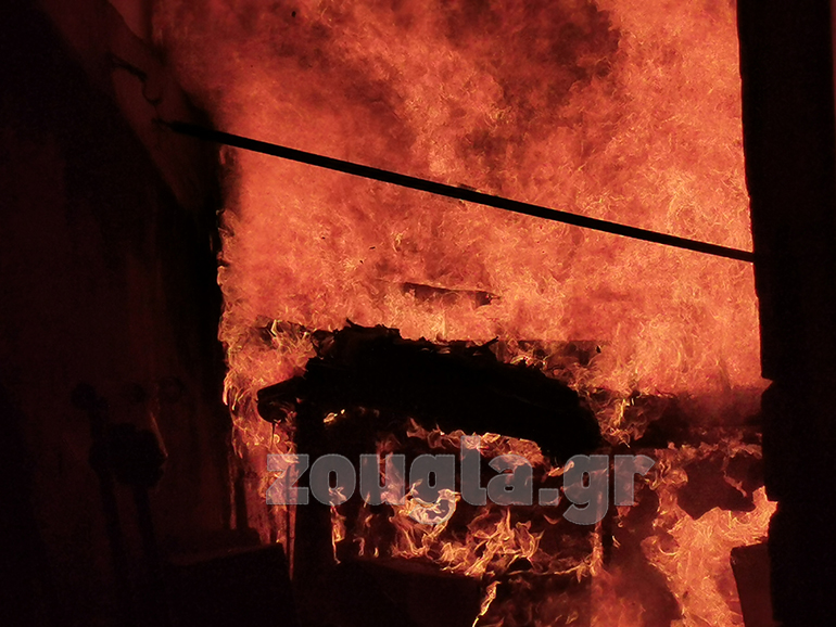 Οι αστυνομικοί που βρίσκονται επιτόπου απομακρύνουν τον κόσμο καθώς φοβούνται την ύπαρξη υγραερίου στον χώρο όπου εκδηλώθηκαν οι φλόγες.