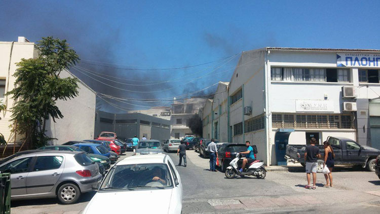 Φωτιά σε αποθήκες της Ένωσης Αγροτικών Συνεταιρισμών Ηρακλείου