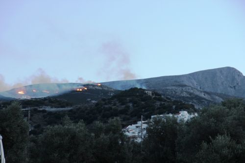 Η φωτιά όπως αναφέρει το Πυροσβεστικό Κλιμάκιο Νάξου έχει εκδηλωθεί σε υψόμετρο περίπου 700 μέτρων και δεν απειλεί, τουλάχιστον προς το παρόν, κατοικημένη περιοχή.