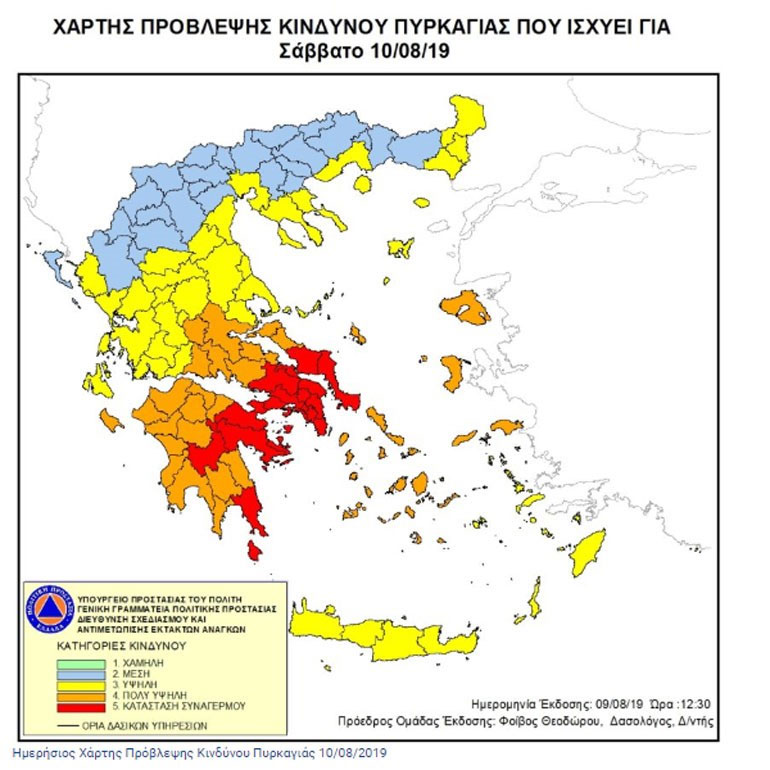 Σε κατάσταση συναγερμού έχει κηρυχθεί για σήμερα Σάββατο, από τη Γενική Γραμματεία πολιτικής Προστασίας, ο κρατικός μηχανισμός σε μεγάλο μέρος της χώρας, λόγω ακραίου κινδύνου πυρκαγιάς.