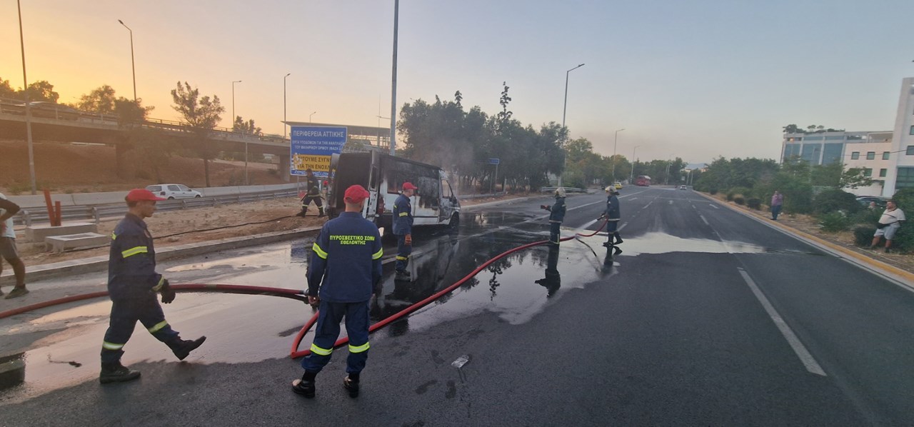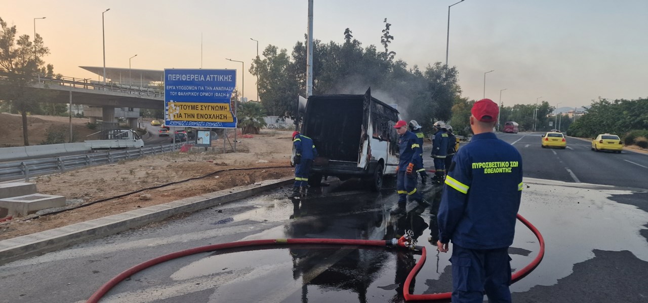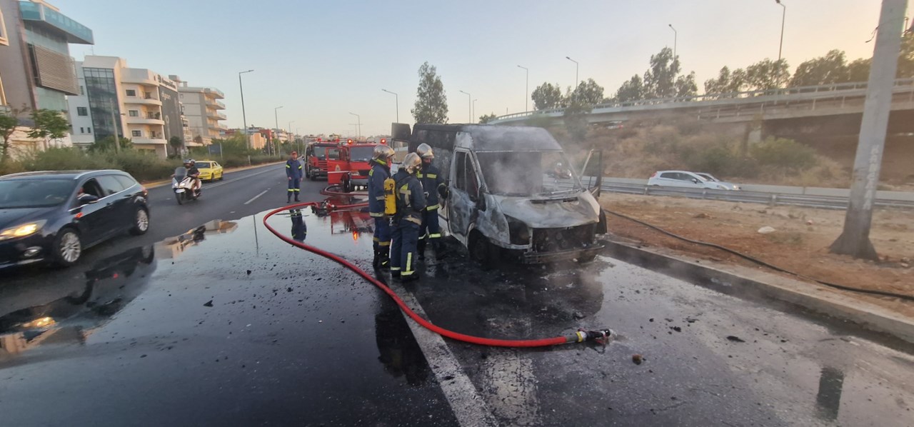 Στις φλόγες τυλίχθηκε ένα φορτηγάκι στην παραλιακή λεωφόρο στο Δέλτα Φαλήρου με τους δυο επιβάτες να πετάγονται έξω την τελευταία στιγμή.