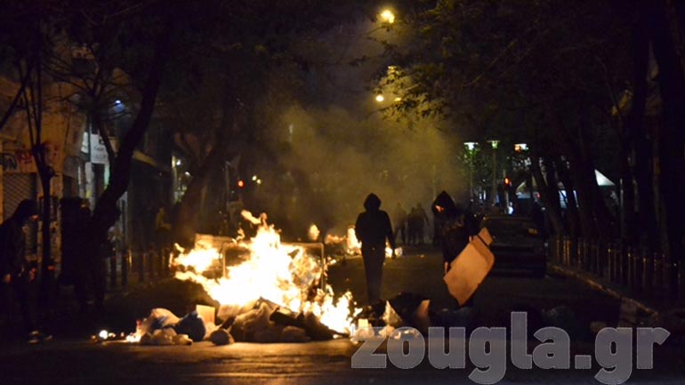 Φωτιά σε απορρίμματα και κάδους σκουπιδιών έβαλαν νεαροί στα Εξάρχεια μετά το τέλος της πορείας αλληλλεγγύης για τους καταληψίες της Πρυτανείας και τους κατοίκους των Σκουριών.