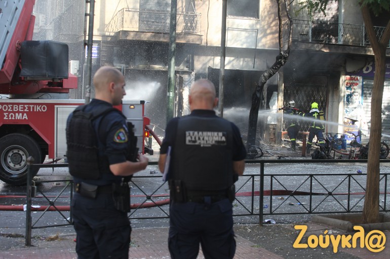 Πυρκαγιά ξέσπασε το μεσημέρι της Παρασκευής σε κατάστημα με φιάλες υγραερίου, επί της οδού Αχαρνών στην Αθήνα, προκαλώντας συνεχείς εκρήξεις.