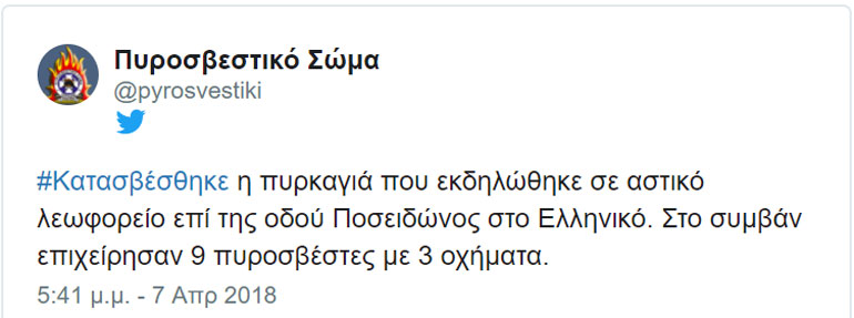 Το tweet της Πυροσβεστικής: