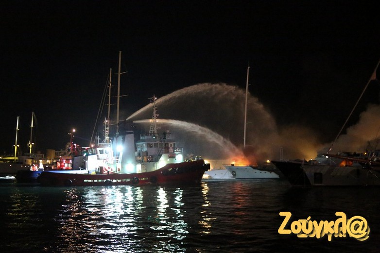 Η φωτιά ξεκίνησε μεμονωμένα σε ένα γιοτ και εν συνεχεία επεκτάθηκε σε διπλανά.