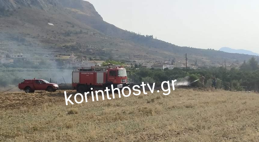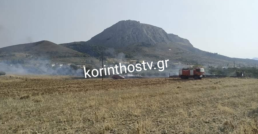 Φωτιά στην Αρχαία Κόρινθο σε ξερά χόρτα και δέντρα