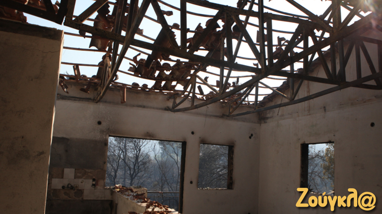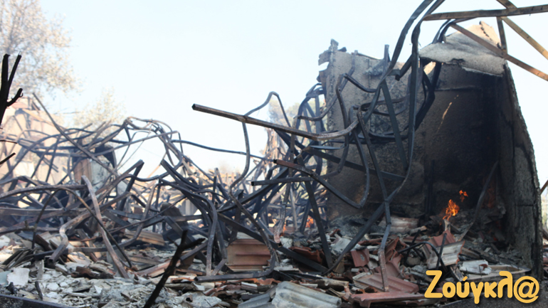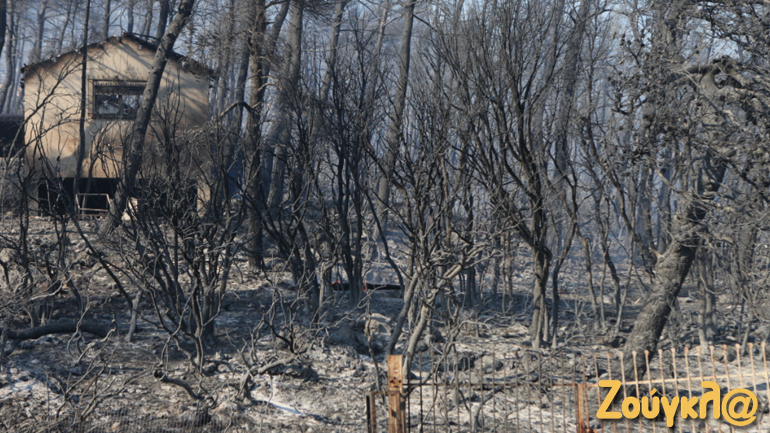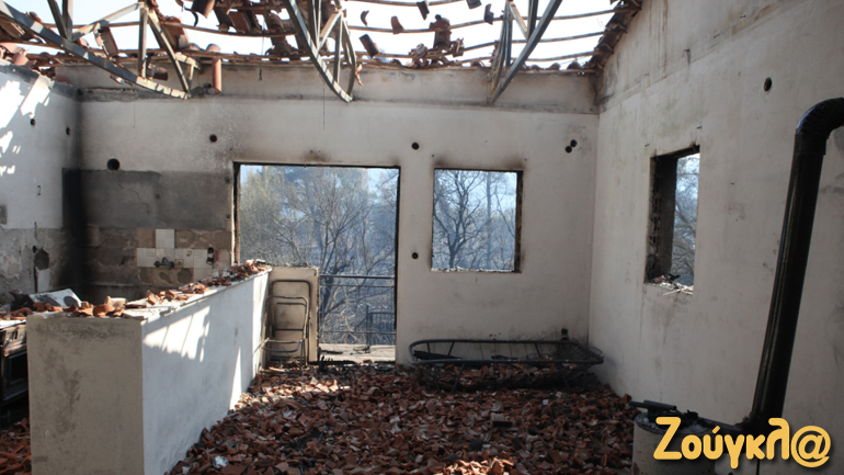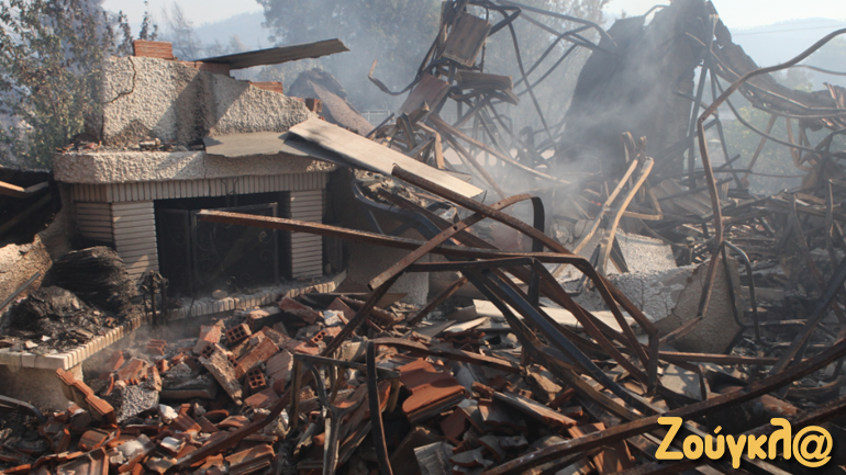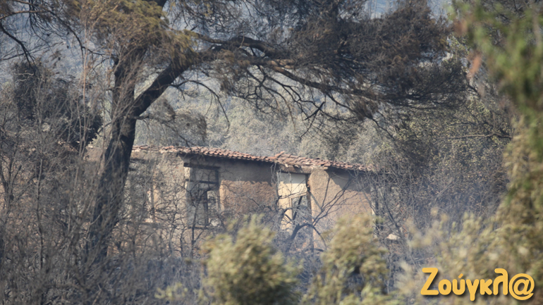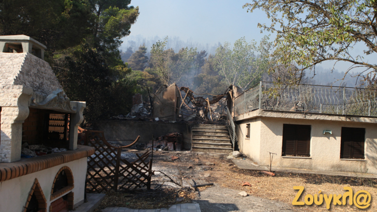 Σπίτια που έχουν καεί από τη φωτιά στα Βίλια: